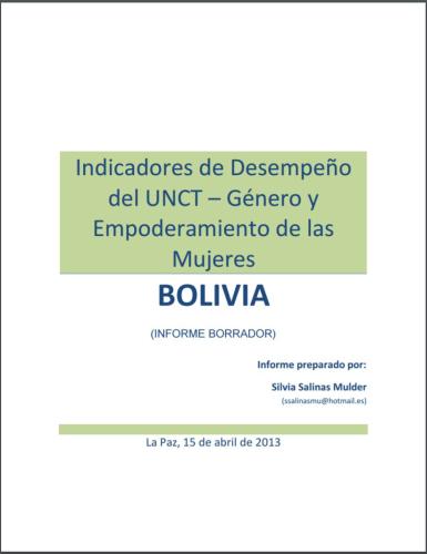 Coordenadas dentro de la ruta de navegación Inicio / Biblioteca de Recursos / Bolivia Indicadores de Desempeño del UNCT – Género y Empoderamiento de las Mujeres Recurso Bolivia Indicadores de Desempeño del UNCT – Género y Empoderamiento de las Mujeres abril 2013 Igualdad de género y empoderamiento de las mujeres Informe barrador- Indicadores de Desempeño del UNCT – Género y Empoderamiento de las Mujeres. Español Tipo de archivo: PDF Descargas: 2697