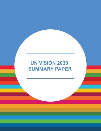 Coordenadas dentro de la ruta de navegación Inicio / Biblioteca de Recursos / Visión 2030 de la ONU - Documento de síntesis Recurso Visión 2030 de la ONU - Documento de síntesis febrero 2016 La Visión 2030 es un ejercicio obligatorio según las orientaciones provisionales del MANUD. Este documento resume los conceptos clave en torno a ella y ofrece ejemplos de experiencias de diferentes equipos de las Naciones Unidas en los países. Inglés Tipo de archivo: PDF Descargas: 1991