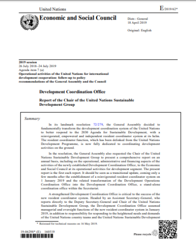 تقرير رئيسة مجموعة الأمم المتحدة للتنمية المستدامة حول مكتب التنسيق الإنمائي