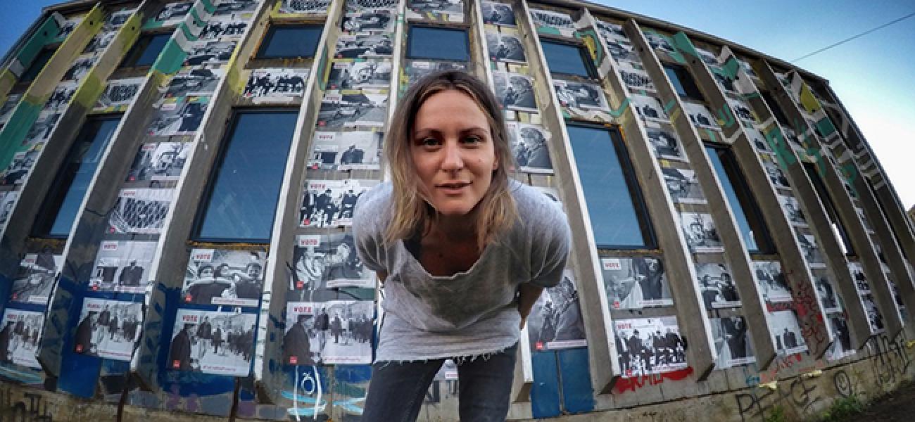 “Vote to end the poverty”- Alketa’s powerful art installation was mounted on the walls of the “Termokiss” building, (an Alternative Community Centre for Youth), sending a powerful message.